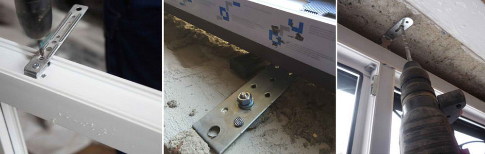 Выполняется, если речь идет об остеклении лоджии. Тогда вся рама держится на анкерных пластинах для окон, которые ее фиксируют по периметру (кроме нижнего профиля). Но, если выполняется остекление балкона, то здесь использовать только анкерные пластины неуместно, потому что они будут держать только боковые створки, а центральная (фронтальная) рама, которая является самой большой и тяжелой, будет крепиться только к боковым рамам. Этого крепления может быть недостаточно, чтобы выдержать вес рамы и ветровую нагрузку.