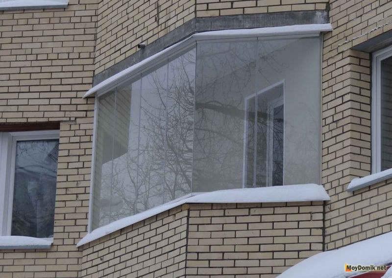 По сути, это стандартное остекление на существующей несущей раме. В данном случае, рама остекления находится в одной плоскости с парапетом лоджии или балкона. Такой подход хорош тем, что парапет принимает на себя основную нагрузку.