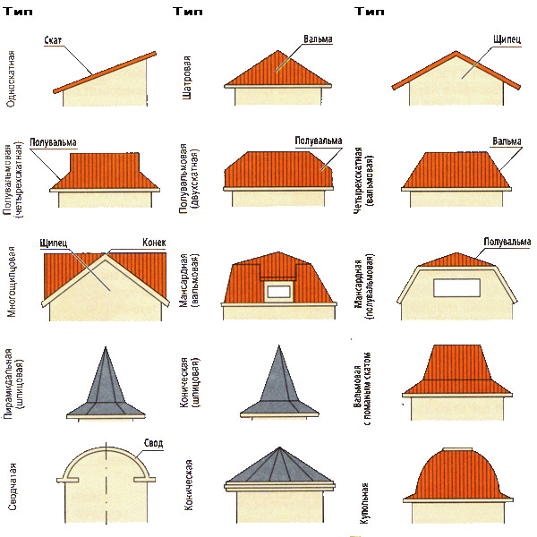 Основные типы крыш