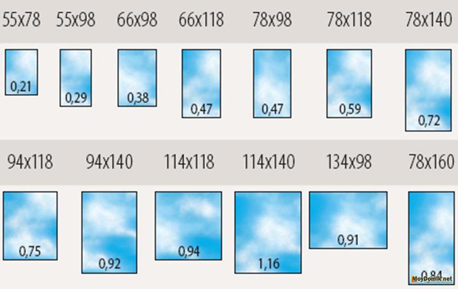 Типоразмеры мансардных окон, в отличие от обычных, не бывают произвольными, а имеют вполне определенный набор величин. Их количество для каждого типа окон колеблется о 6 до 15-ти. Так же для каждого производителя характерно различие аксессуаров.