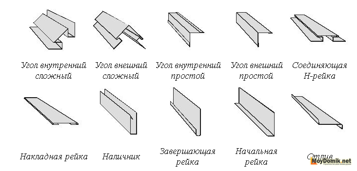 Комплектующие для металлосайдинга аналогичные тем, которые применяются, когда осуществляется монтаж винилового сайдинга.