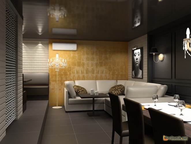- Начинать работу с черным цветом, можно только лишь в том случае, если высота потолков в комнате не меньше трех метров. Темные оттенки категорически противопоказаны маленьким и низким помещениям.