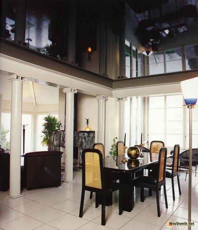 Может быть, вы представляете свой потолок в виде большого сияющего зеркала, отражающего все, что находится в комнате. Неплохой вариант, тем более что с таким видом покрытия помещение будет казаться намного больше и выше. Черный глянец сразу же будет бросаться в глаза, привлекая внимание своей индивидуальностью и глубиной.
