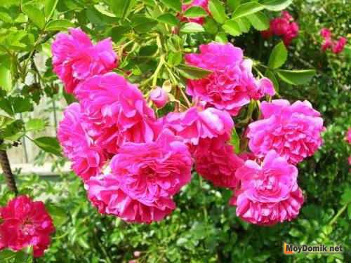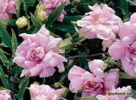 Высокодекоративный кустарник с яркими цветами выращивается в бордюре и активно используется в ландшафтном дизайне. Такой изгородью можно задекорировать любую хозяйственную постройку, придав ей даже некоторую гламурность и таинственность.