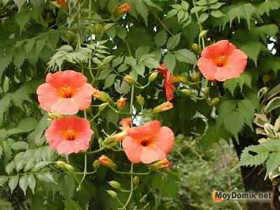 Итак, если вам нужно замаскировать неприглядные уголки сада (например, сарай или ограду), оформить террасу, беседку или укрыть стволы старых деревьев используйте такие популярные вьющиеся растения как: