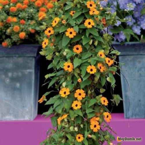 Кроме того, при создании живой изгороди, однолетки позволяют быстро решить некоторые декоративные проблемы долгоростущей многолетней лианы – быстро заполняют пустующие места, создают вертикальные цветовые пятна и обильно цветущие ширмы.