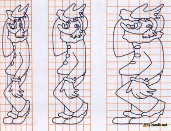Путем масштабирования по клеткам можно менять пропорции рисунков. Например, исходная форма не нравится, и вы хотите ее изменить. Для этого, при переносе рисунка сохраните одну из сторон в исходном размере, а вторую в новом квадрате увеличьте.