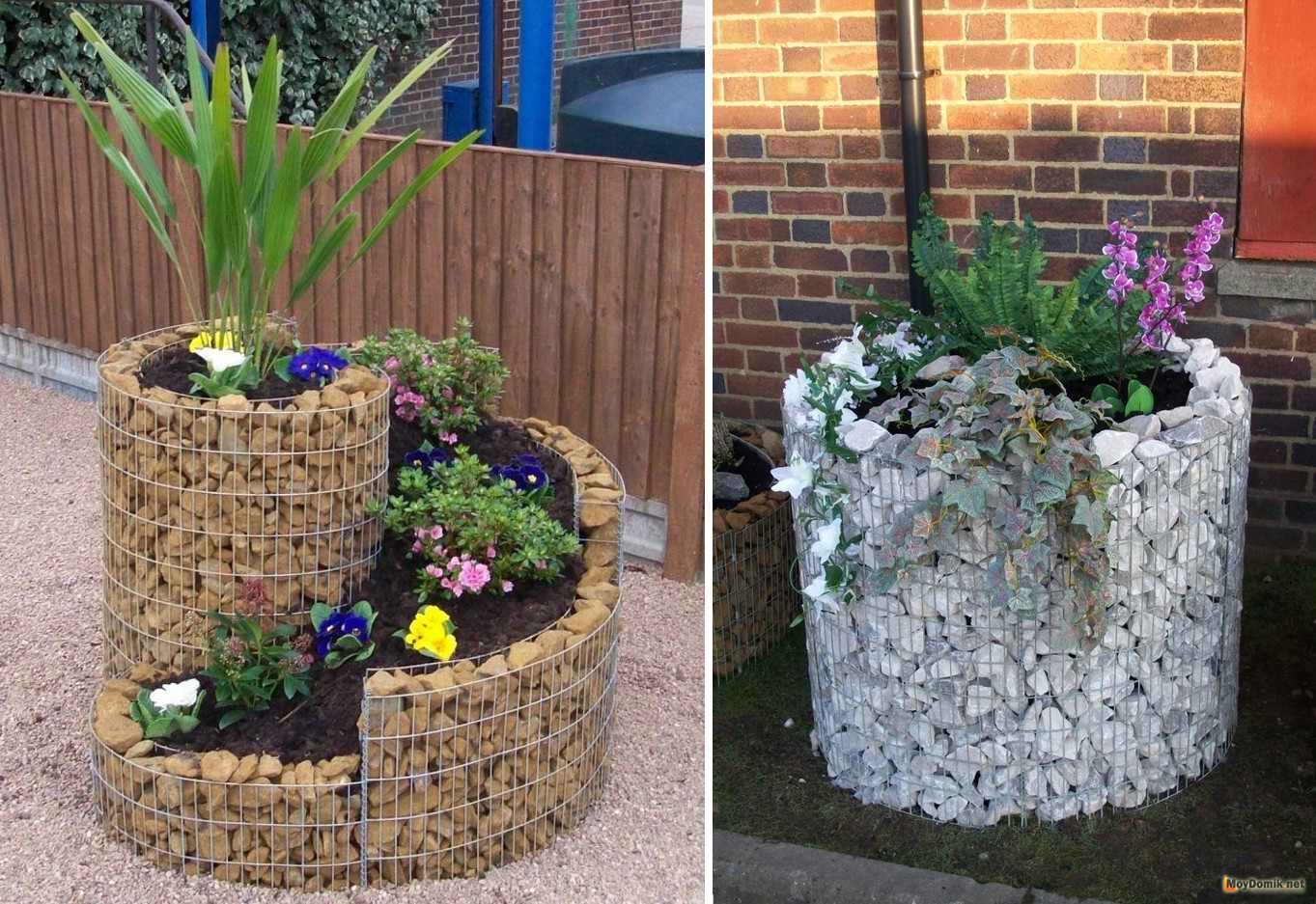 Клумба из сетки и камней, как выразительный конструктивный элемент сада