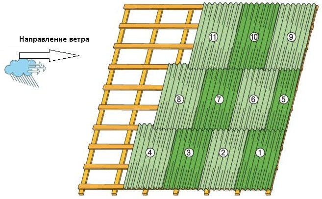 Порядок крепления последующих листов ондулина показан на фото.