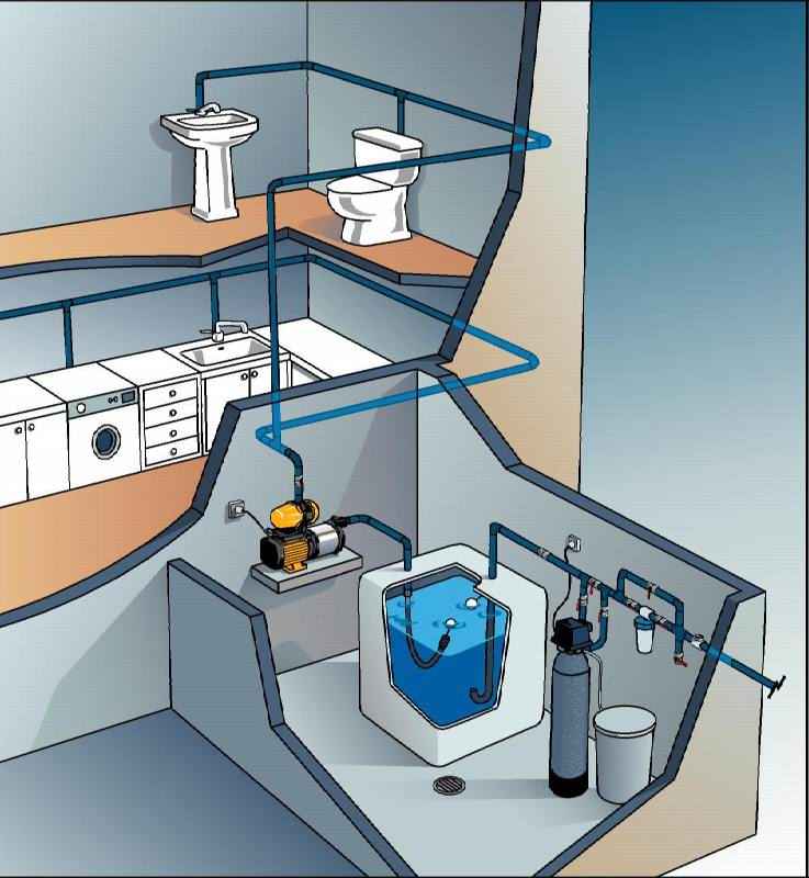 Схема водоснабжения дома состоит из элементов:
