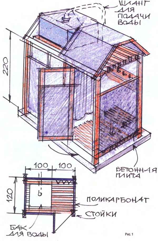 Пошаговый фотоотчет строительства душа из поликарбоната своими руками