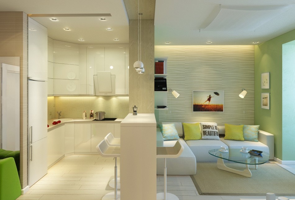 Как оформить интерьер маленькой кухни студии?