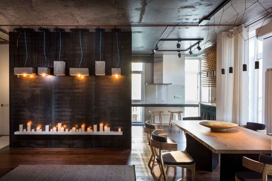 Универсальной формулы идеального интерьера кухни студии не существует! Но в 2016 году представление о дизайне студийной кухни в целом изменилось, задав новый вектор в интерьерах на 2017 год. Из подручного помещения, кухня студия трансформировалась в полноценное пространство для общения и жизни. Дизайнеры сознательно отказались от кричащего декора, считая, что зачастую им просто маскируют несовершенства. Для оформления кухонь, объединенных с гостиными, выбирают самые роскошные оттенки: черного, бронзы и шампанского, и не обходят стороной нержавеющую сталь, натуральный камень и древесину ценных пород.