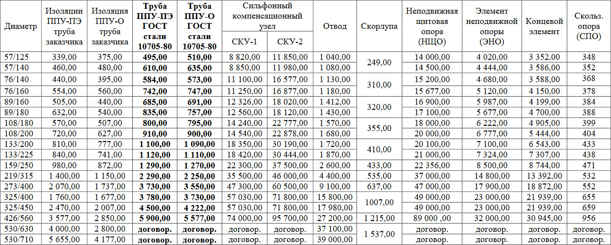 Для желающих купить или получить представление о стоимости труб ППУ и фасонных элементов, приведем ориентировочные цены