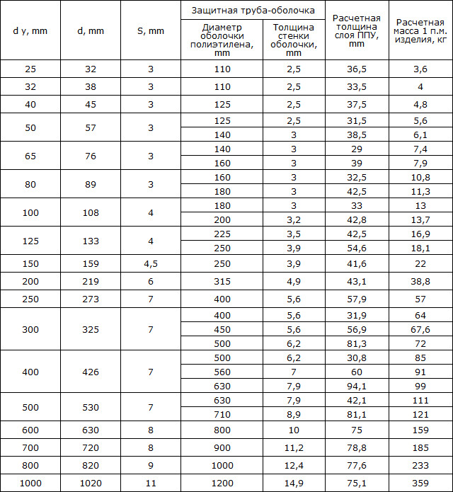 Размеры труб ППУ