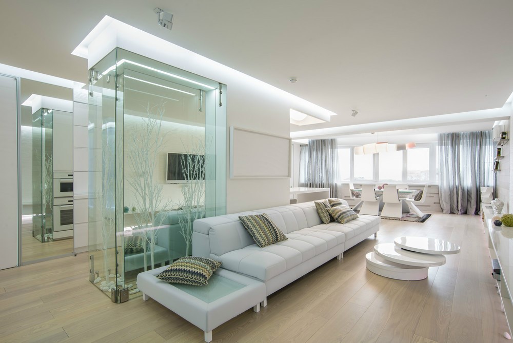 Как соединить кухню, гостиную и спальню в одном помещение, если спать на раскладном диване не комильфо, готовить приходится много, а гостей встречать часто? Рассмотрим на примерах удачной организации жилого пространства: больших и маленьких однокомнатных квартирах-студиях, и сразу поймем, что белые диваны – горячий интерьерный тренд.