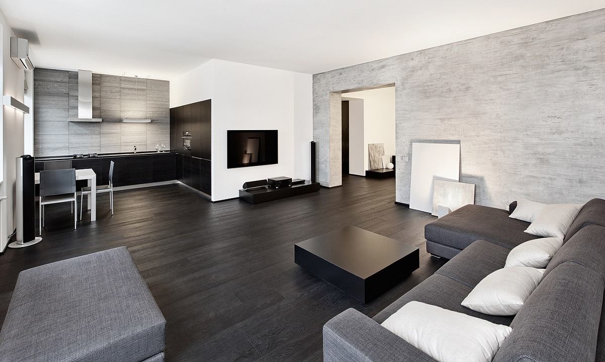 Проект большой однокомнатной квартиры-студии в серых тонах