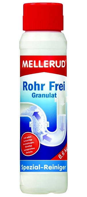 Более технологичный вариант, использование препарата типа Mellerud. Компоненты чистящего средства для труб Меллеруд реагируют с водой с образованием тепла.