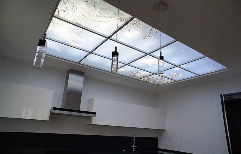 В кухне без окна, которая никогда не видела дневного света, фальшокно на потолке создаст иллюзию естественного освещения. Управляя им через WEB-интерфейс специального предложения, можно устанавливать реальное положение текущей погоды. Например, если на улице солнечно, то окно подсвечивается светодиодными светильниками максимально ярко, облачно – делают свет тусклым.