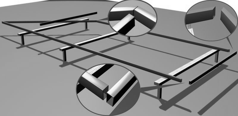 Совет. Новичкам, не имеющим большого опыта в сварочных работах, мастера советуют нарезать под углом только те заготовки, которые будут расположены сверху каркаса. Так будет исключен доступ воды в каркас рамы. Нижние же, можно сваривать под прямым углом.