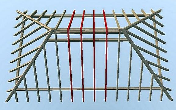 Стойки выполняют функцию опоры при установке конькового бруса (оранжевый цвет на картинке).