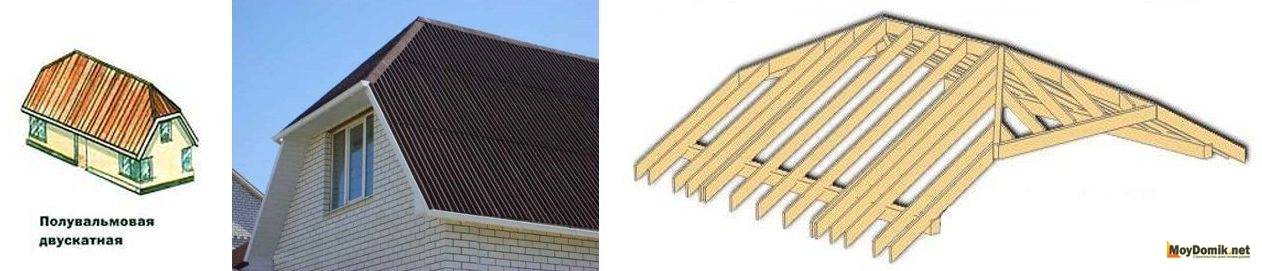 Отличается наличием вертикальных фронтонов, в которых можно установить окна. На картинке видно различие двух разновидностей полувальмовых крыш (голландской и датской).