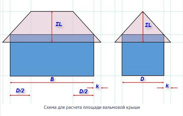 Расчет площади вальмовой кровли позволяет заранее определить не только затраты на приобретение кровельных материалов и монтаж, но и определить требования к материалам, а также необходимость обустройства и точную конфигурацию обрешетки.