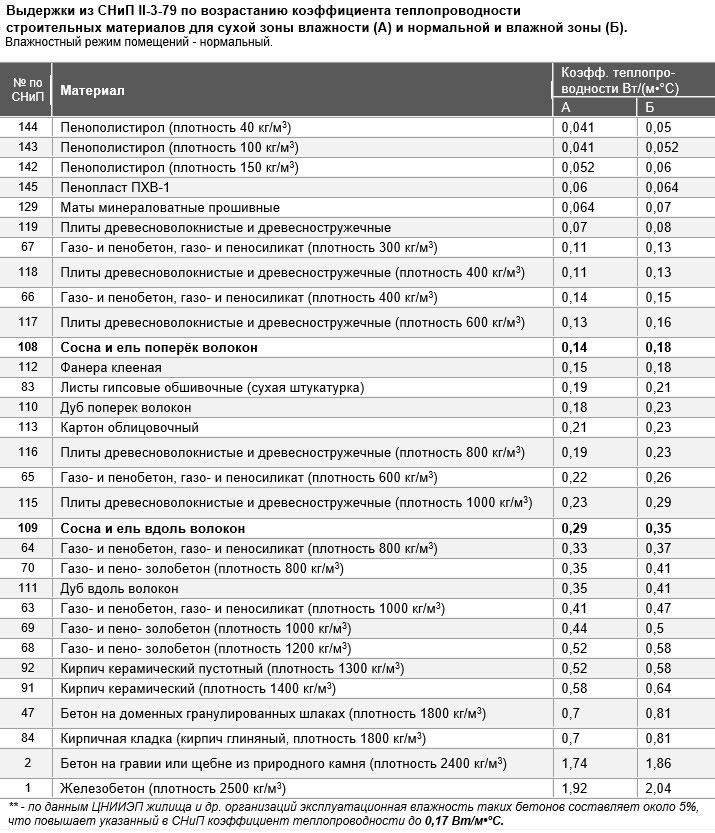При этом следует обратить внимание, что согласно СНиП II-3-79, значение коэффициента теплопроводности (λ) зависит от влажности в регионе.