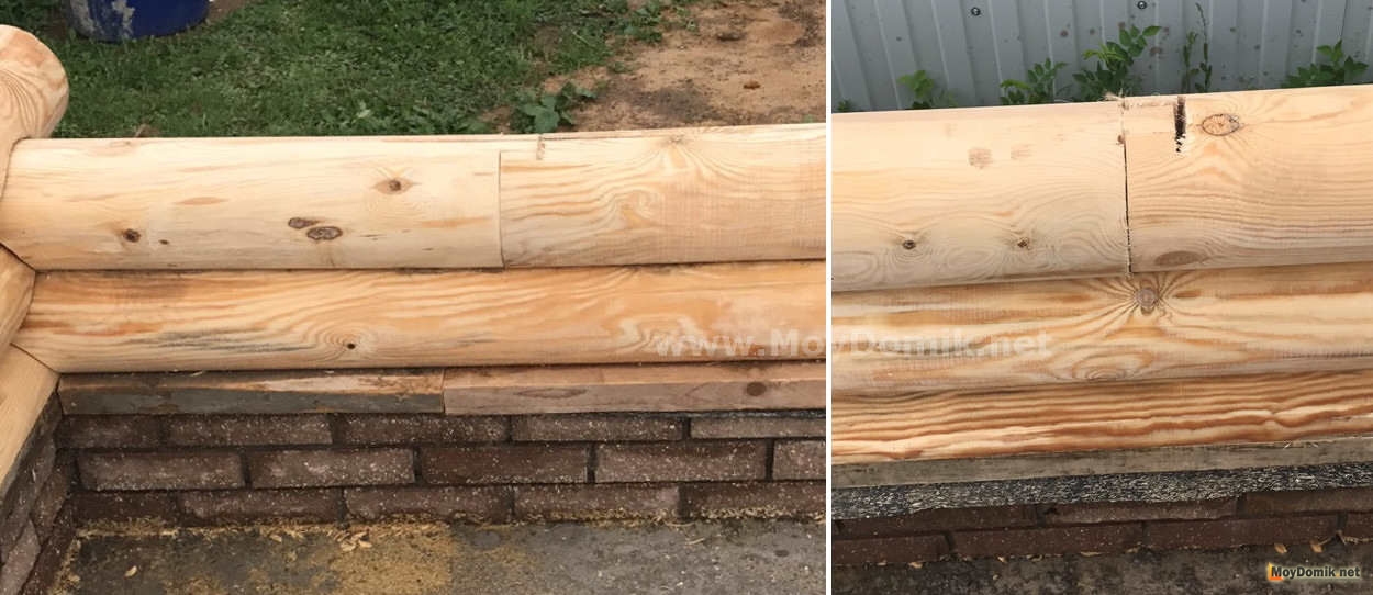 - нижняя обвязка – второй (лаговый) венец, который позволяет сформировать черновой пол в доме из оцилиндрованного бревна, а также межэтажное перекрытие;