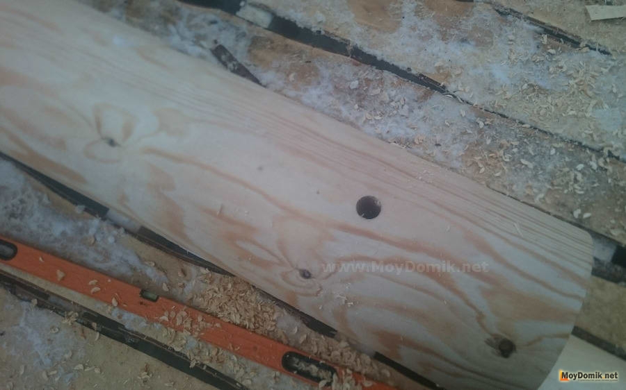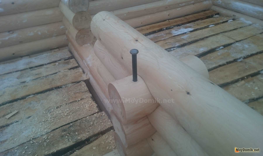 - после фиксации бревна нагелем подстраховочные гвозди вынимаются;