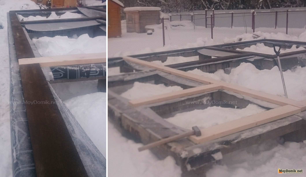 - после возведения рядовых стен на балку будут уложены лаги с шагом в 600-700 мм.