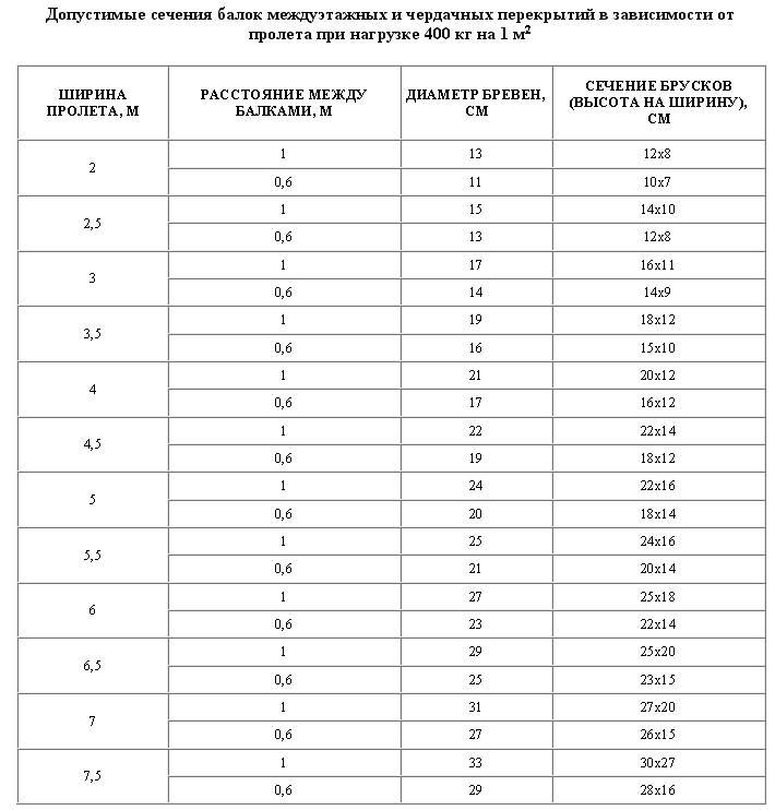 Воспользовавшись таблицей можно получить представление о том, какое сечение должно быть у балки при определенной нагрузке.