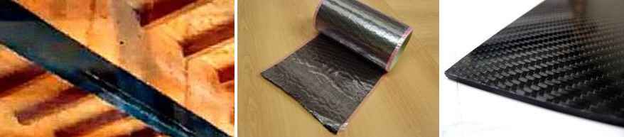 Современная технология усиления (армирование углеродным волокном). Углеволокно (ленты, листы, пластины, нити, ткань) наклеивается в несколько слоев, пока не будут достигнуты требуемые показатели жесткости балки. Удобство работы и легкость материала приводят к тому, что углепластик приобретает популярность как эффективное средство для восстановления балок и строительных конструкций.