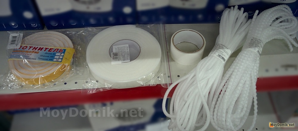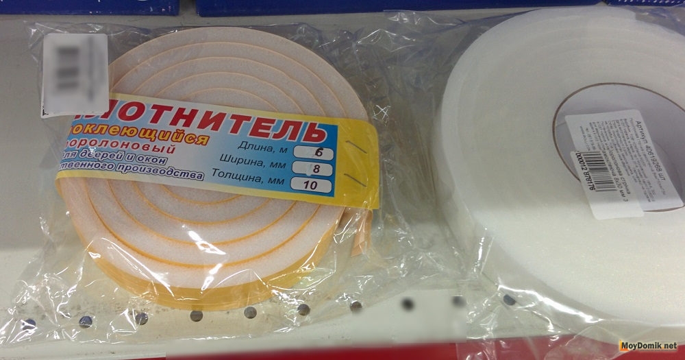 Более технологичный способ заделки окон и борьбы со сквозняком. Такой метод хорош тем, что позволяет обойтись без заклеивания щелей бумагой или тканевыми полосками. Благодаря наличию липкой (клейкой) ленты на поролоновом утеплителе его можно наклеить на внутреннюю сторону створок окна.