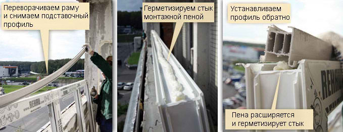 Подставочник (подоконная планка, профиль) достаточно плотно примыкает к раме, но его можно дополнительно утеплить. Для этого нужно: